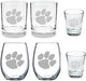 Alabama Crimson Tide 6 Piece Satin Etched Glass combo set includes 2 Premium Rock glasses have official logo on front and back, hold 14 ounces and are 4 1/4" tall and 2 Premium wine glasses include the official logo, hold 15 ounces and are 4 1/4" tall. Heavy-Duty Glass & Excellent Quality. Made in the USA.