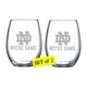 Georgia Bulldogs Stemless Wine or Beverage Glass - Boxed Set of 2. Holds 15 ounces and is 4 1/2" Tall. Clear with Satin Etched Team Logo. Heavy-Duty Glass & Excellent Quality. Made in the USA.