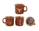 ONE MUG - three sides shown in picture. Official NCAA Texas Longhorns Relief Ceramic Mug. 16 ounces, high quality, full color ceramic mug. Official Logos and Colors. Front - Logo in relief (3D) and team name. Side - on handle - team name. Back - large full color logo. Inside - team color inside the mug and team name. Dishwasher and microwave safe. Show your team spirit!